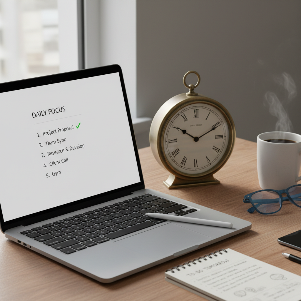 - Wyznacz ramy czasowe na planowanie — nie przekraczaj 15 minut dziennie.